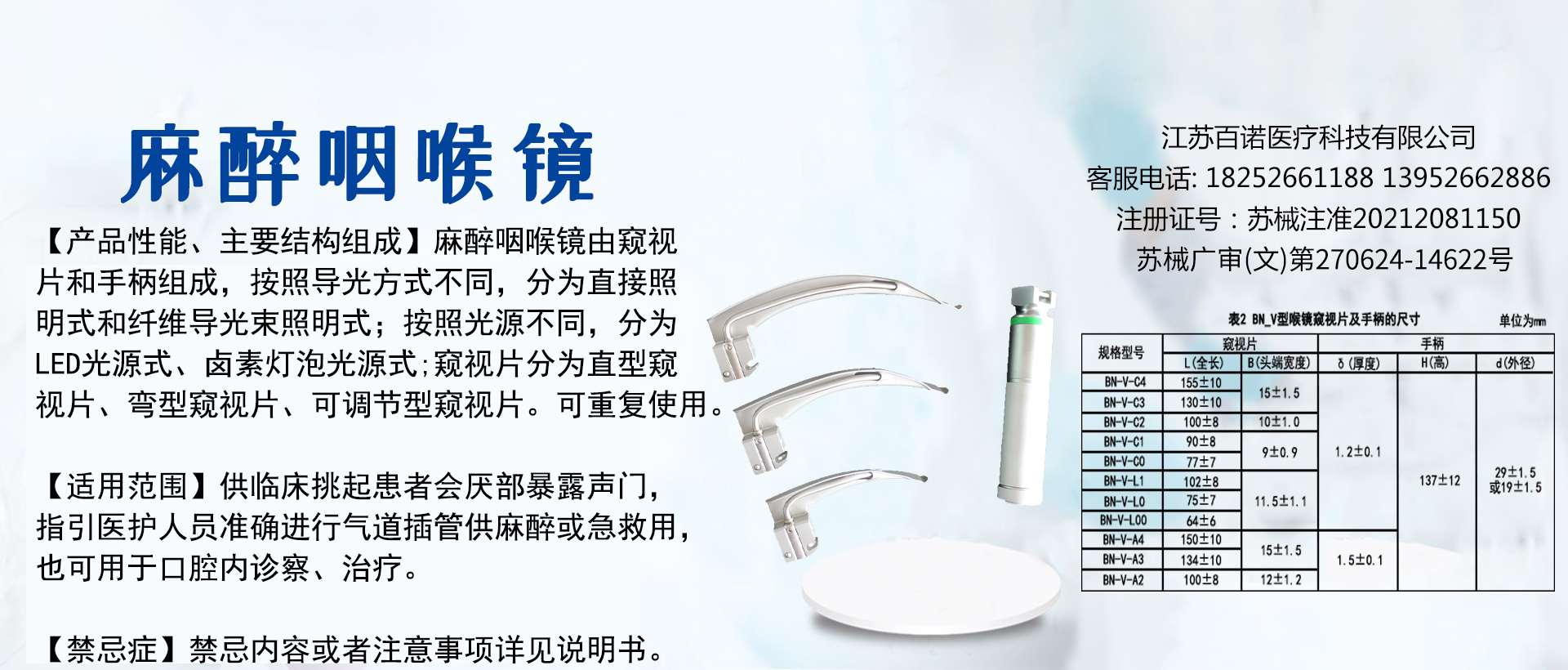 江苏百诺医疗科技有限公司是一家集麻醉视频喉镜研制、开发、销售于一体的医疗器械企业。近几年来本公司通过不断完善和改造,硬件设施与软件管理达到标准。