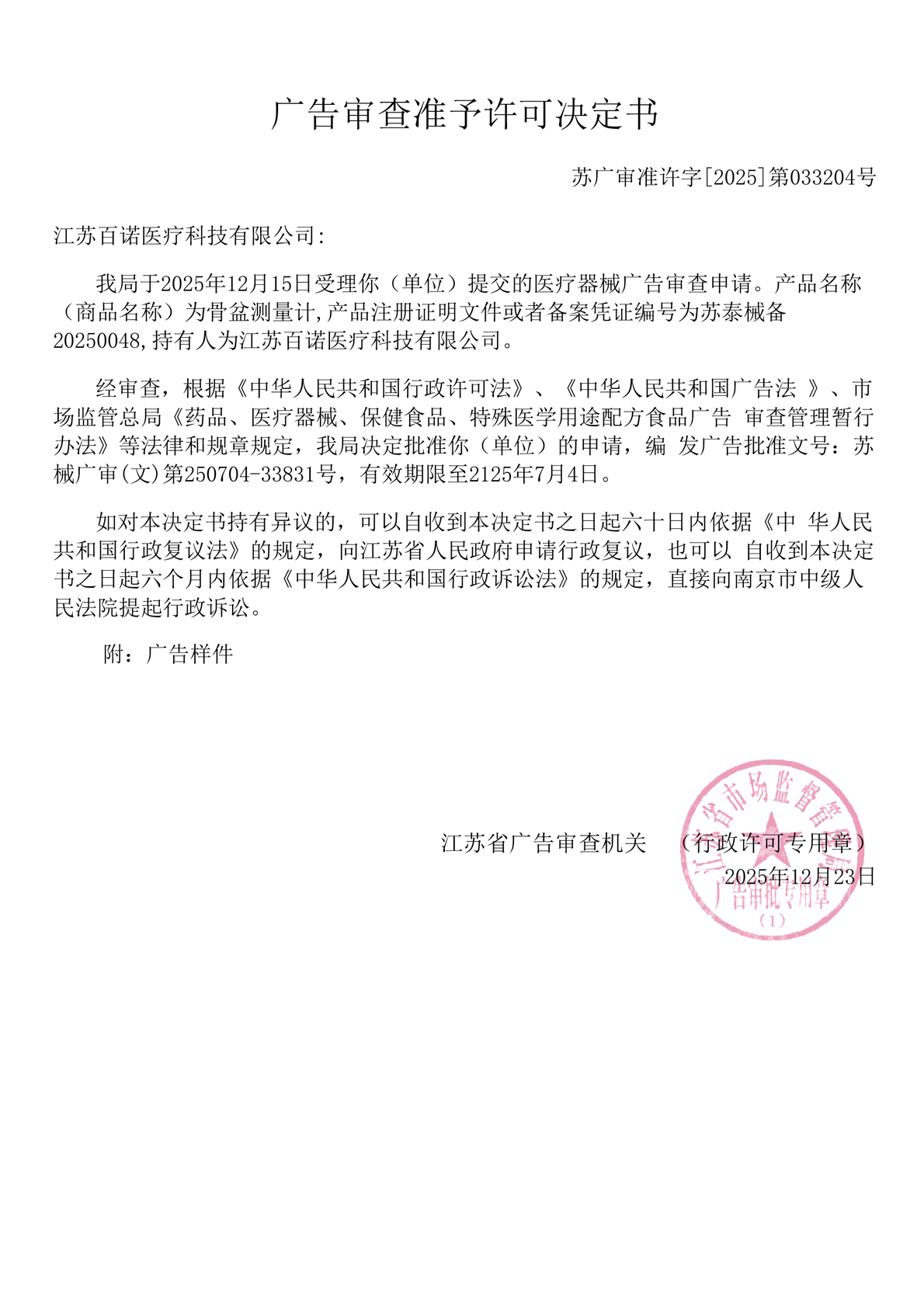 Advertising Examination Form