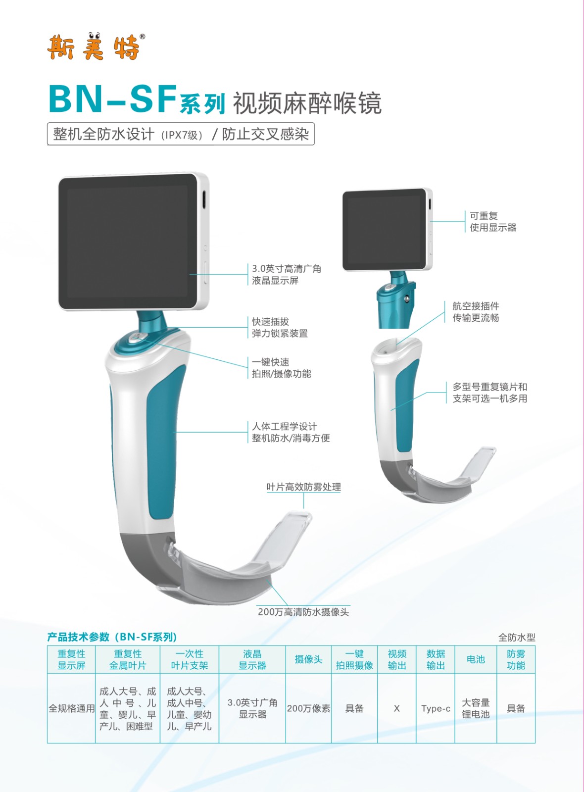 整机全防水设计(IPX7级)防止交叉感染