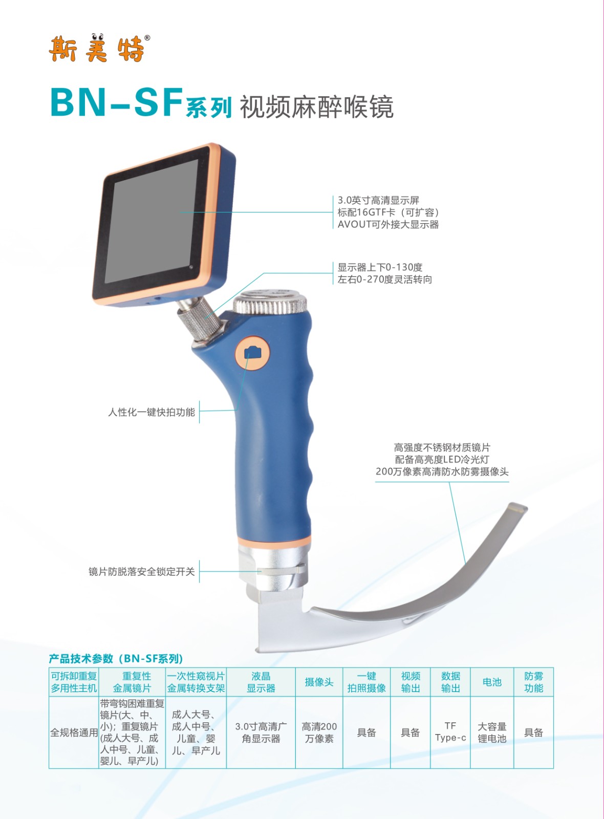 4、安全:可以针对,开口度小,头颈受损,声门高,颚骨破裂,肥胖患者的困难气道插管手术,有效减少气管插管失败率,并可避免插管造成口腔出血及气管挫伤。插管过程中