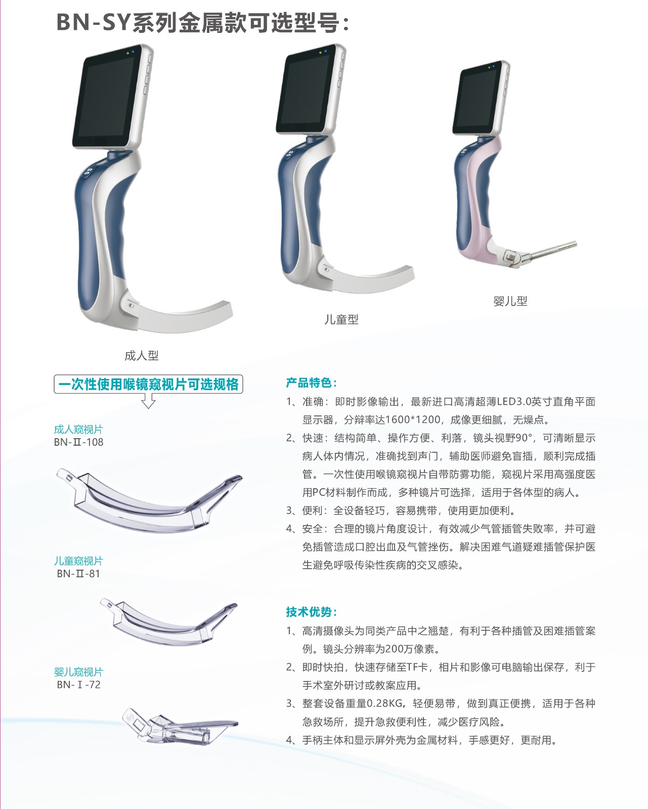 4、安全:合理的镜片角度设计,有效减少气管插管失败率,并可避免插管造成口腔出血及气管挫伤。解决困难气道
