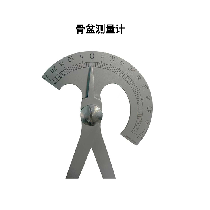 骨盆测量计由标尺、手柄、指针组成。采用不锈钢材料制成。非无菌提供,不在内窥镜下使用